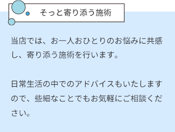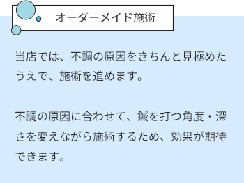 当店では、お悩みに合わせて鍼を打つ深さを変えることで、トラブルへの直接アプローチを狙います。